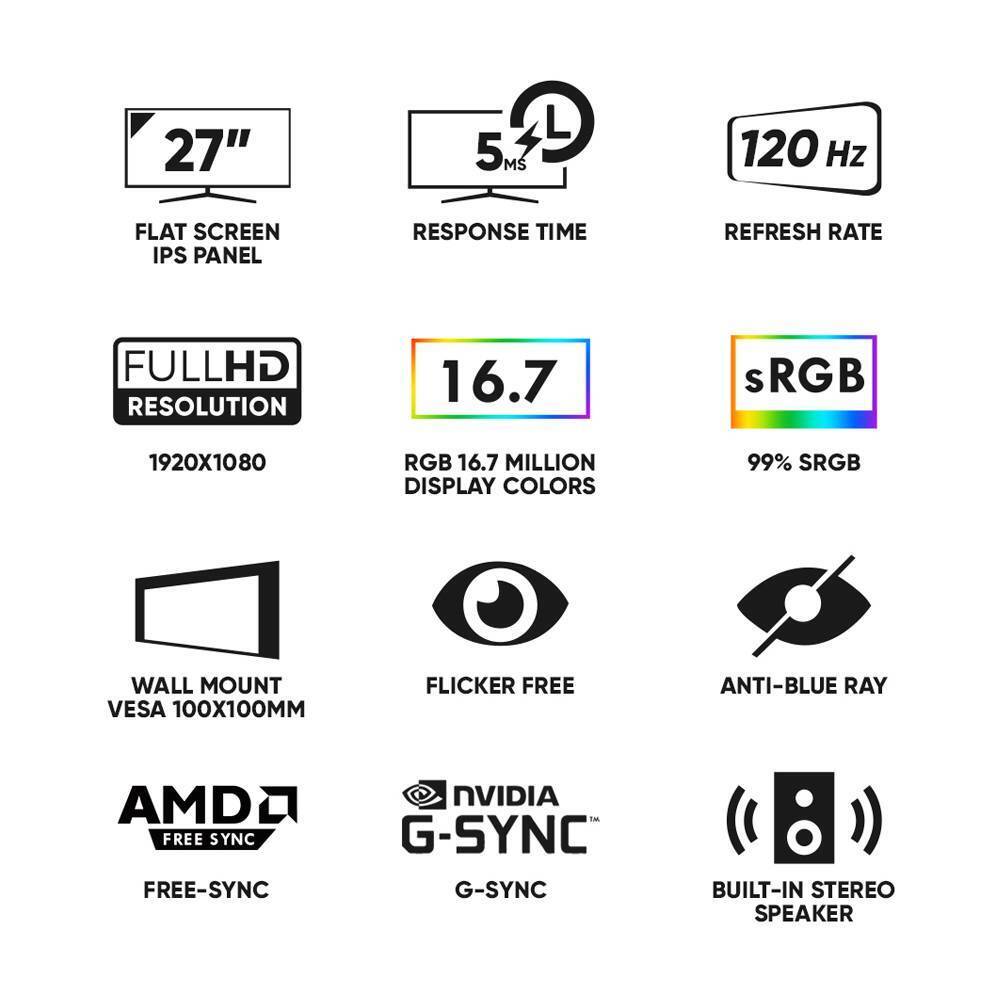 Με 99% κάλυψη sRGB και 16.7 εκατομμύρια χρώματα, η εικόνα είναι ζωντανή και λεπτομερής, κατάλληλη τόσο για gaming όσο και για multimedia χρήση. Η υποστήριξη AMD FreeSync και NVIDIA G-SYNC™ μειώνει το tearing και το stuttering, προσφέροντας ομαλή εμπειρία παιχνιδιού.