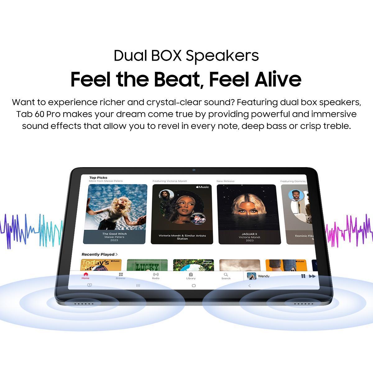 Χάρη στη διπλή υποδοχή κάρτας (1 SIM + 1 TF / 2 SIM), μπορείτε να το χρησιμοποιείτε σαν κινητό με δεδομένα 4G ή για επαγγελματικές και προσωπικές γραμμές μαζί. Με υποστήριξη για όλες τις βασικές μπάντες 4G, το Tab 60 Pro σάς κρατά συνδεδεμένους όπου κι αν βρίσκεστε.