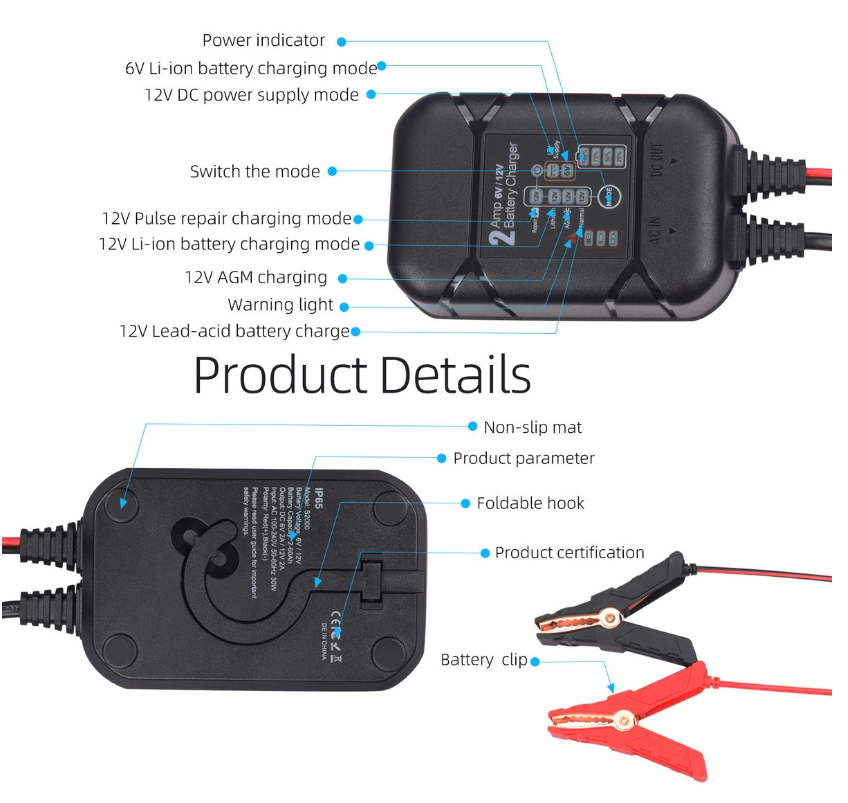 Ο BYGD S2000 είναι ένας αξιόπιστος και έξυπνος φορτιστής-συντηρητής μπαταρίας, ιδανικός για αυτοκίνητα, μοτοσυκλέτες και άλλα οχήματα με μπαταρίες 6V ή 12V.