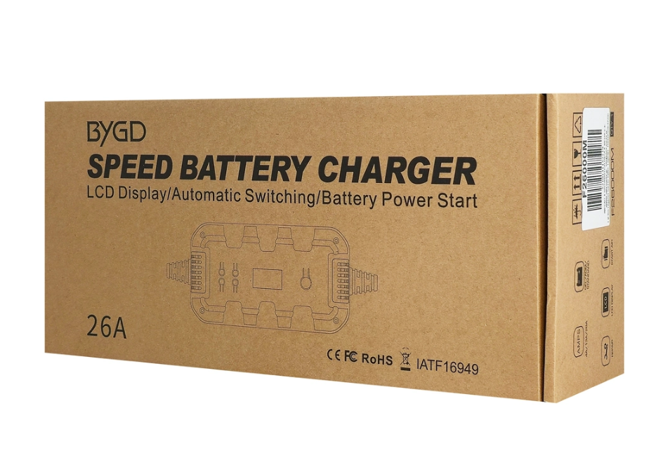 Ο BYGD F26000M είναι ένας αξιόπιστος και έξυπνος φορτιστής-συντηρητής μπαταρίας, ιδανικός για αυτοκίνητα, μοτοσυκλέτες και άλλα οχήματα με μπαταρίες 6V, 12V και 24V.