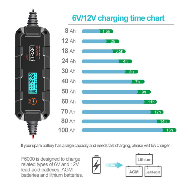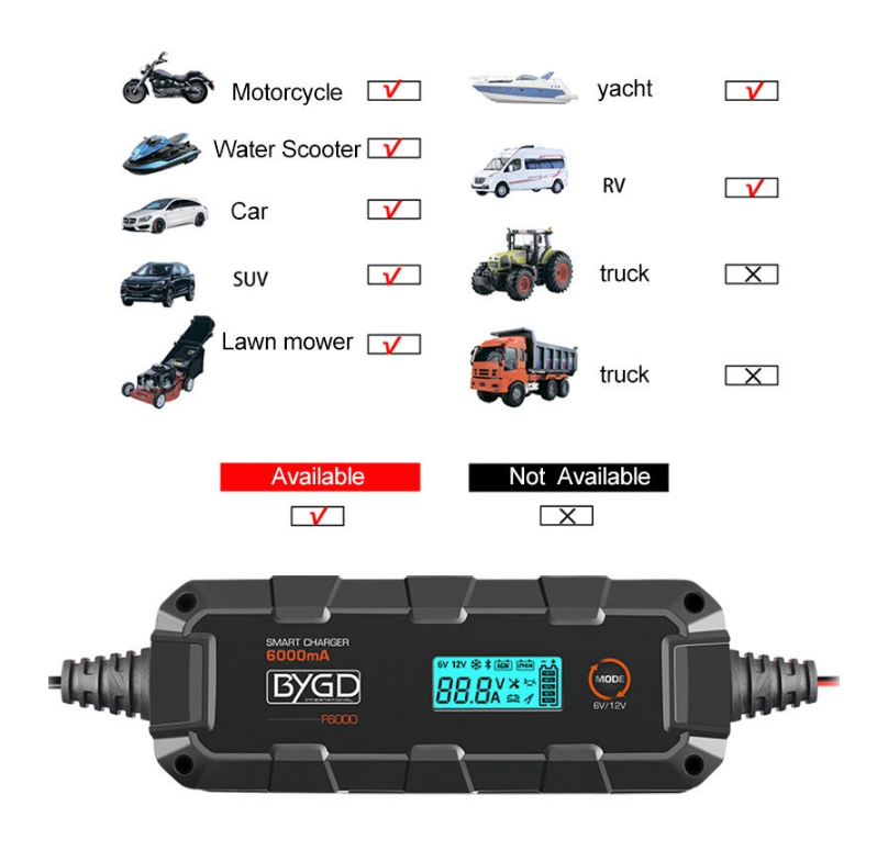 Ο BYGD F6000 είναι ένας αξιόπιστος και έξυπνος φορτιστής-συντηρητής μπαταρίας, ιδανικός για αυτοκίνητα, μοτοσυκλέτες και άλλα οχήματα με μπαταρίες 6V ή 12V.